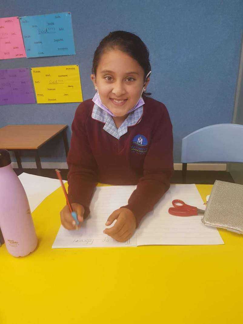 ZaraDandenongShowing a positive Mindset for Learning by overcoming your feelings of anxiety on your first day at school and making a great effort to focus on the teacher's instructions.