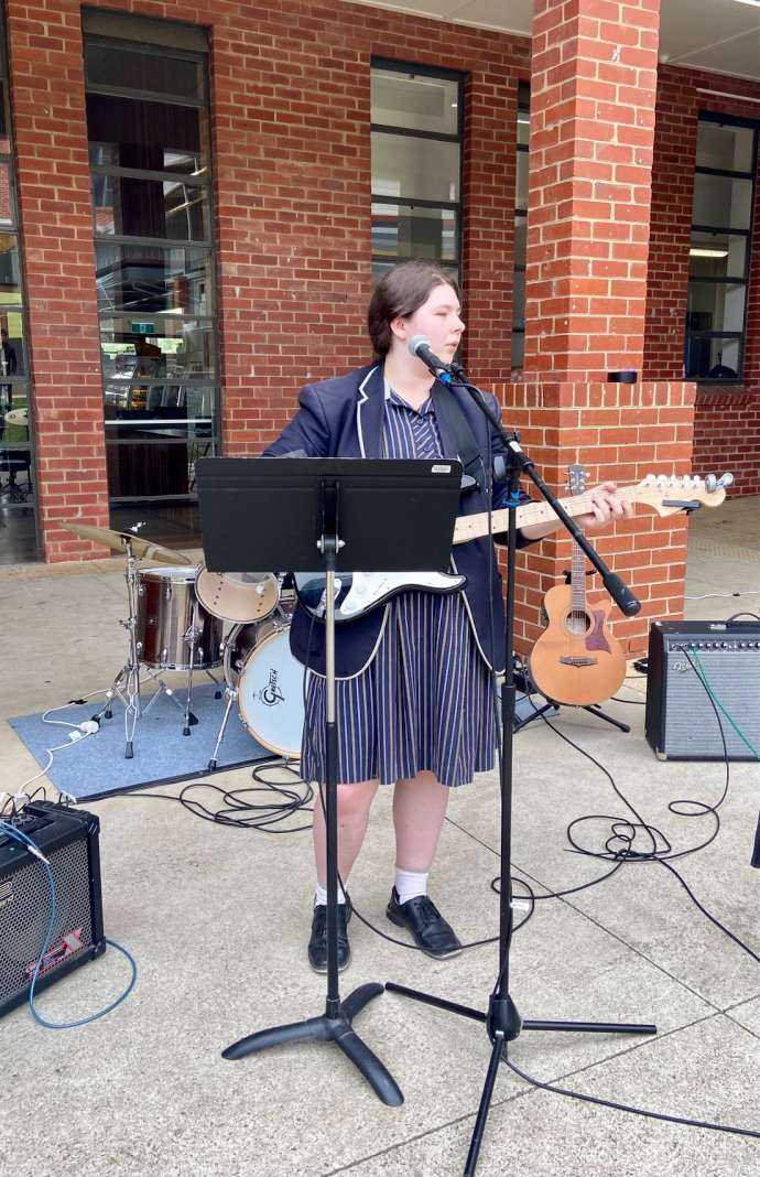 The opportunity to perform in front of others is something our students have not been able to do for awhile. Great to see Mykaela performing at a lunchtime concert for staff and students. Mykaela is studying VET Music and VCE Music Performance this year, so this was great practice for her practical exam later this year.